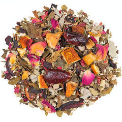 Apfelstücke (Apfel, Säuerungsmittel: Zitronensäure), Hibiskusblüten, Brombeerblätter, süße Brombeerblätter, Orangenschalen, natürliches Aroma, Bohnenschalen, Cranberries (Cranberries, Zucker, Sonnenblumenkernöl)(5%), Rosenblütenblätter, Granatapfelschalen(5%), Zinkgluconat(0,5%), Ascorbinsäure(0,5%), Cranberrystücke(0,5%)
